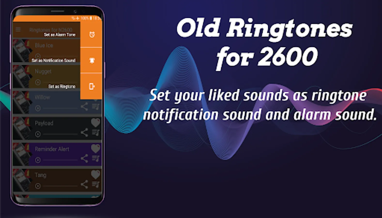 •With old 2600 ringtones you can; set as ringtone, set as notification sound and set as alarm sound.