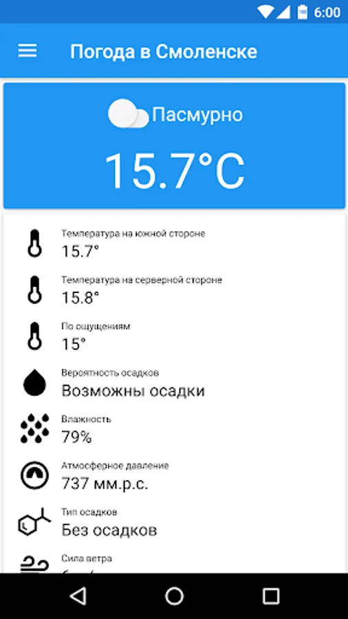 Temperature is measured by high-precision temperature sensors and updated every 5 minutes. Two sensors are used: one is located on the north side of the house, the second on the south. Auto update every 15 minutes