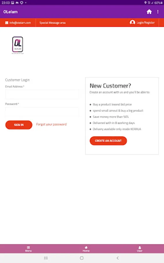 olelam app is a bidding app. It's a good online marketing platform for sale as well as bidding a products . Now we are launching in Kerala region , so product will deliver only in Kerala. We make it as our mission to provide the right opportunities at the right time, paving the way towards well being, development and growth. T&C apply!