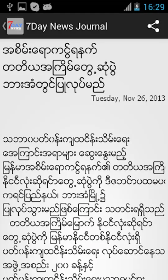 Read the 7Day News Journal (7Day Daily News), the leading Daily newspaper in Myanmar (Burmar), on your Android.
