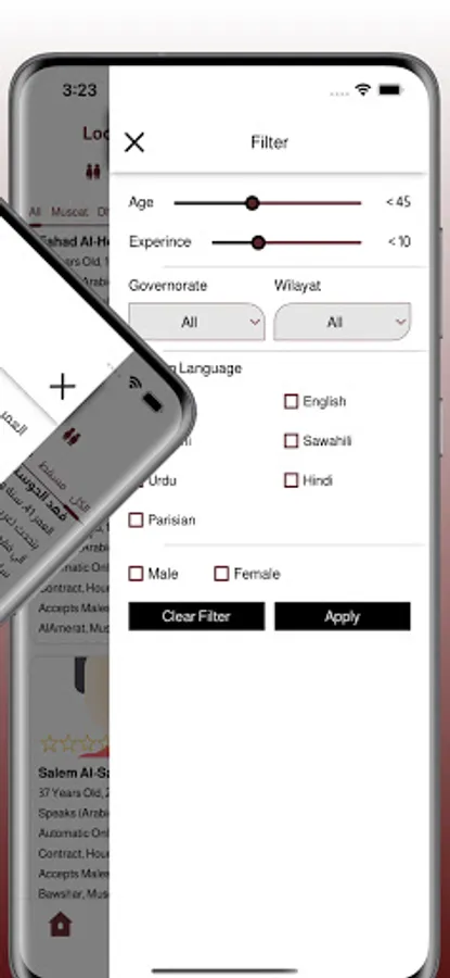 o Provides basic and sub filters to filter and sort-out instructors list through several inputs such as: Gear (manual/automatic), instructor gender, work experience, age, governorate and state, working hours, instructor’s spoken languages and other inputs.