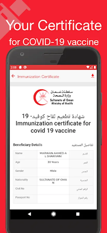 Tarassud+ is the official Covid-19 application of Sultanate of Oman for citizens/residents/travelers to Oman. The app is developed and maintained by the Ministry of Health(MOH) Oman and provides features like digital vaccination certificate, RT PCR results and Covid-19 related statistics.
