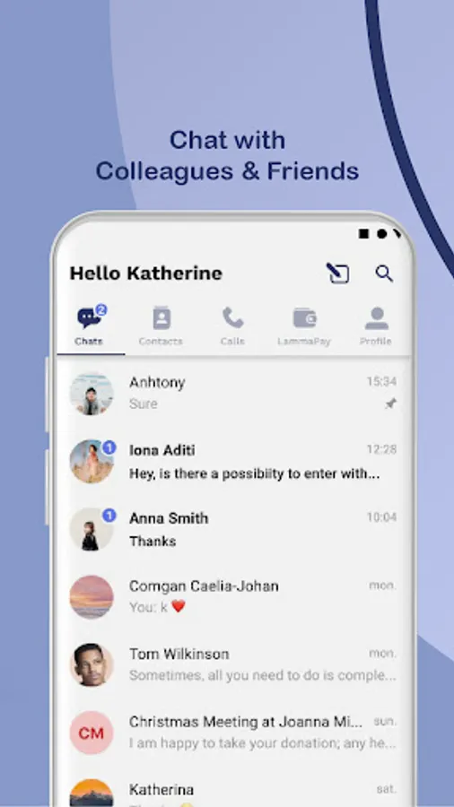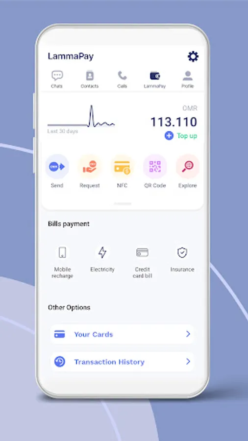 Lamma is a fintech chat app which has an ewallet that enables you to transfer money in different ways such as in-chat transfer, Pay using QR code and NFC. In addition, Lamma has a chatting feature with video & audio calls, and text & audio messages with the option of sending different files.
