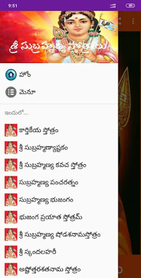 Sri Subrahmanya Sthothralu - Telugu android Application designed for the Devotees of Lord Subrahmanya Swamy (Murugan). in this Application Contained Sri Sri Subrahmanya Sthothram Subhramanya Bhujangam & more Sthothras at One Place.