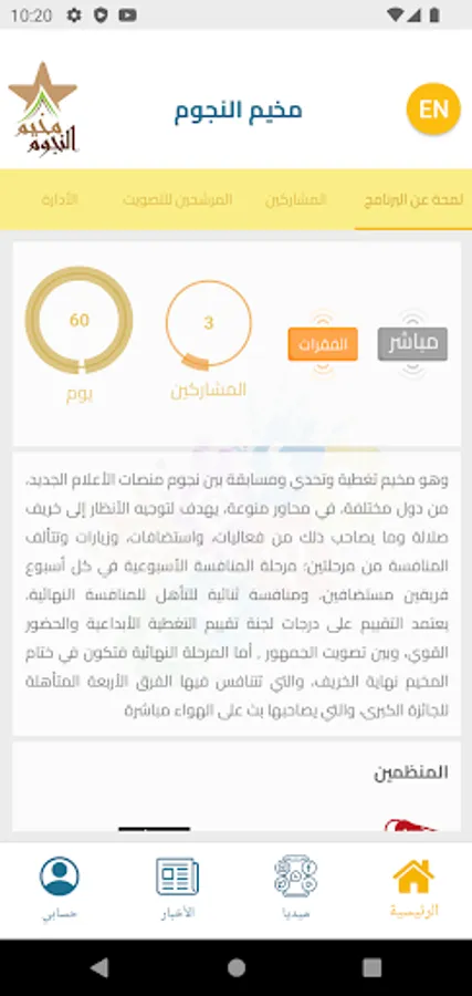 The Social TV application includes all programs and events related to important and famous seasons, as it sheds light on important events and events. and is not devoid of the aspect of entertainment, as it allows the possibility of competition between celebrities through audience voting.