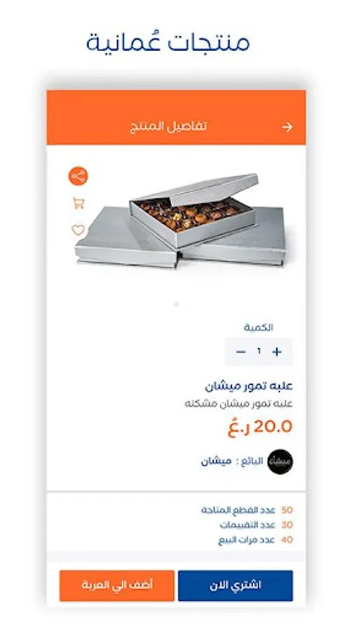 An e-commerce site in the Sultanate of Oman, providing various products and services from different segments of business leaders, owners and owners of small and medium enterprises and productive families, contains a number of features through which entrepreneurs are registered in the market and display their products and services.