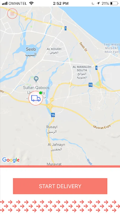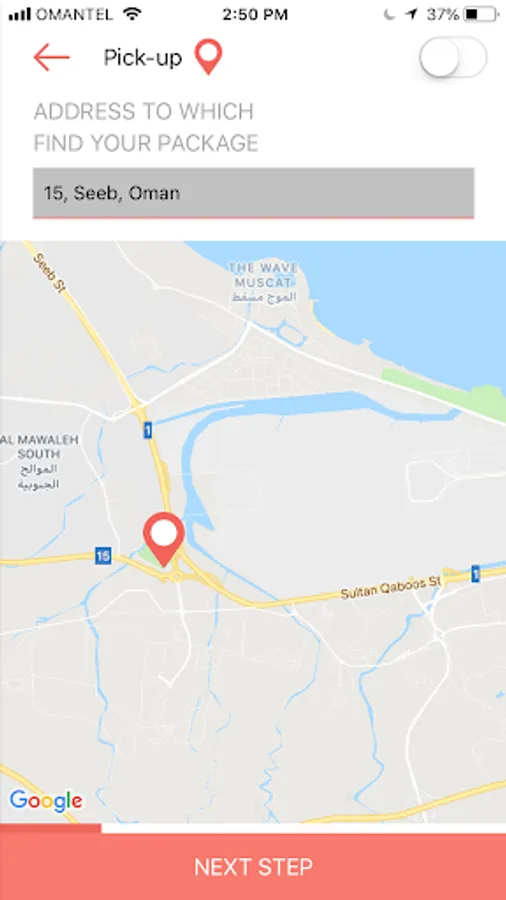 - Choice of location either by searching for it or by drop pin on the map or by selecting saved default location in the personal data.