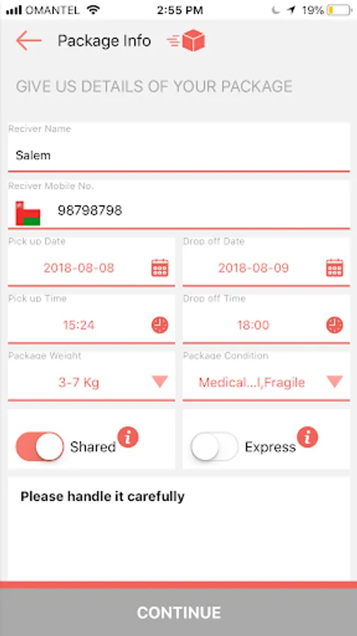 - Select the day and time of receipt of the package and the day and time of delivery of the package