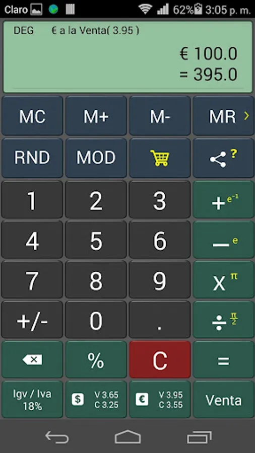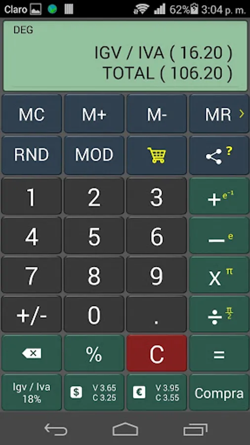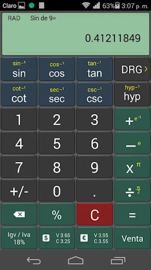 In Calculator Ideal we forget to be going to another screen using many cumbersome steps that exist in other calculators, with just slide the top of the keypad can access other functions.