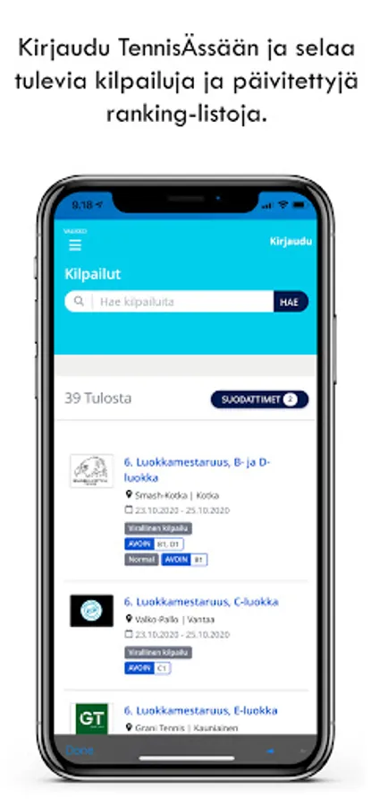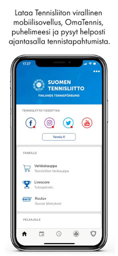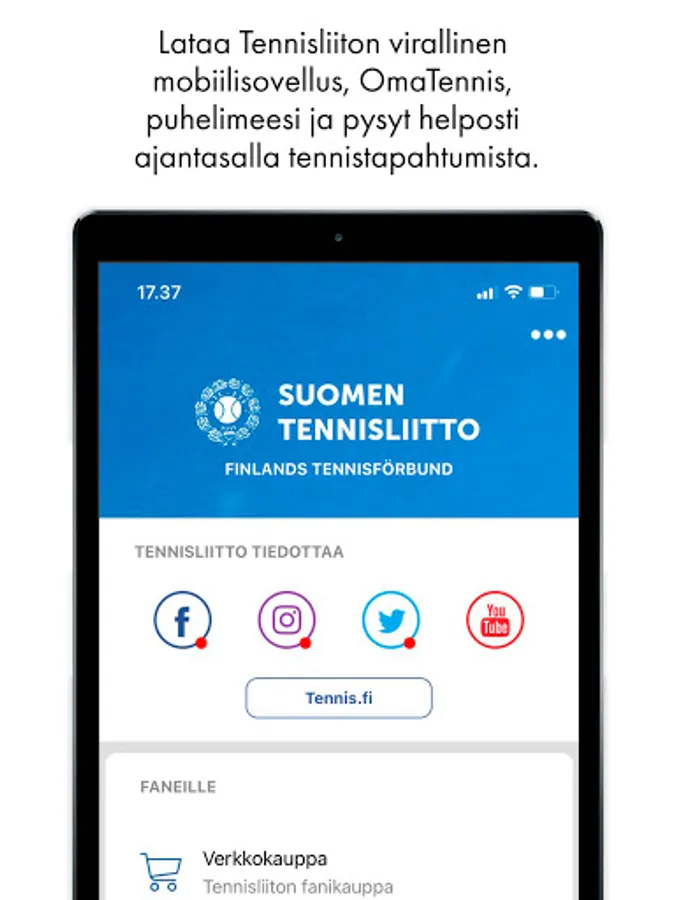 Download the Tennis Association's official mobile app, OmaTennis, to your phone and stay up-to-date on tennis events.
