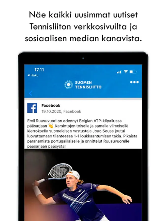 - All the latest news from the Tennis Association's website and all social media channels. You can follow these pages without social media credentials and without signing in. You will also receive push notifications from all the news if you wish and stay up to date.