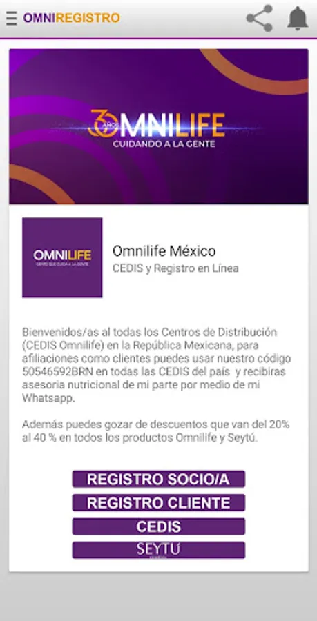 Welcome to the new registration application to be an admirable client or commercial distributor of Omnilife in the Mexican Republic, information on CEDIS throughout the country as well as a contact number.