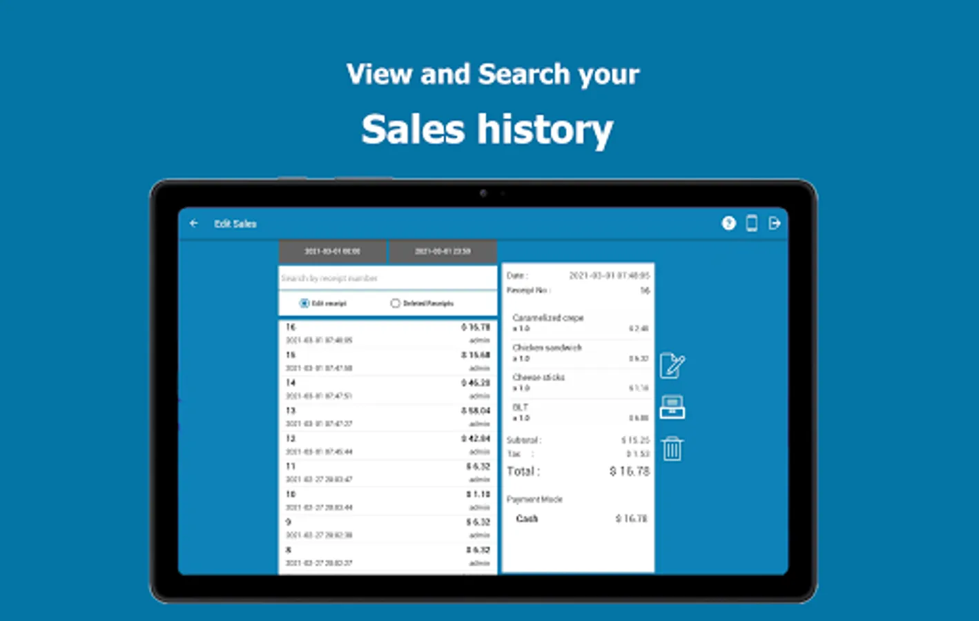 Cash register is easy to Setup your Menu items in the pos system for restaurant (Point of Sale application ) , Organize products by category,you can Update menu at Anytime.