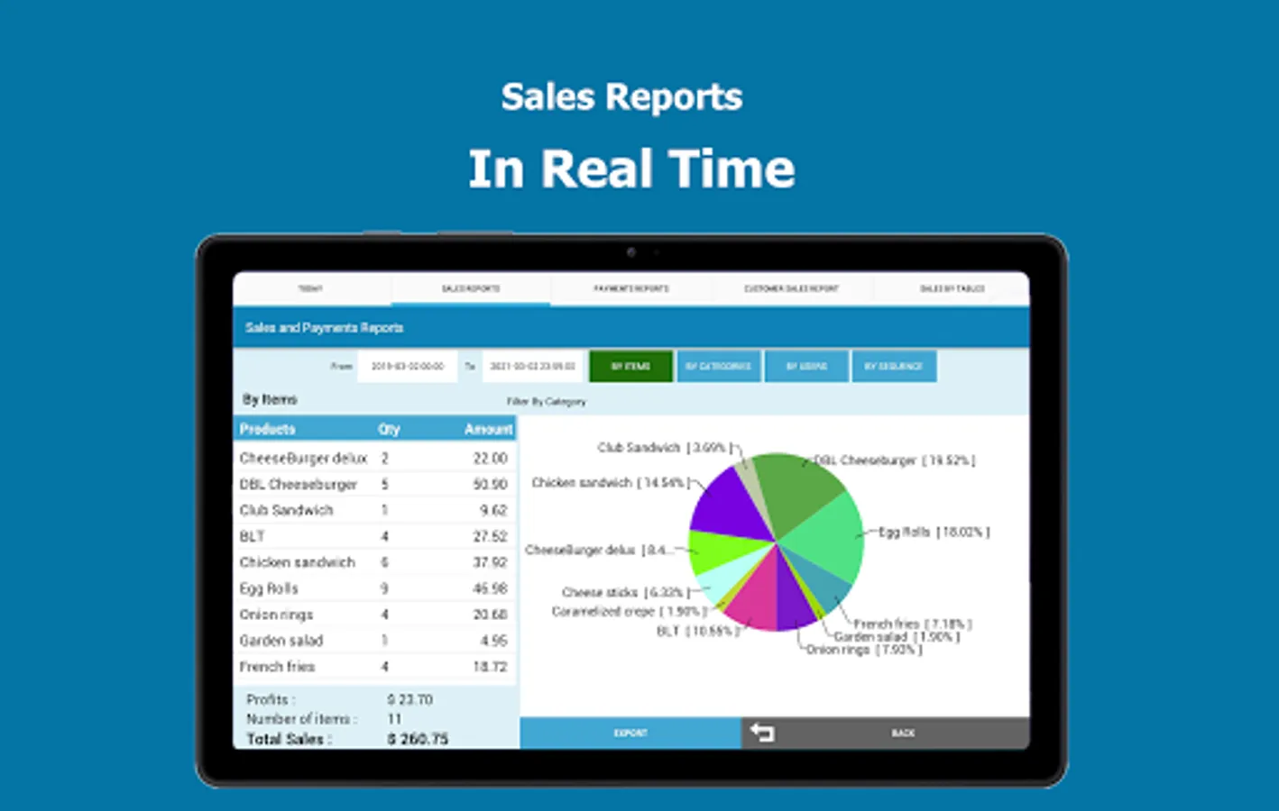 Restaupos offers a comprehensive reporting through the back office to instantly generate