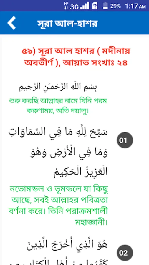 আল হাদীদ, আল মুজাদালাহ্, আল হাশ্র, আল মুম্তাহিনাহ্, আস সাফ, আল জুমুআহ, আল মুনাফিকূন ,