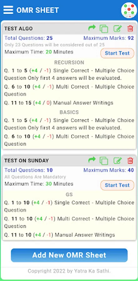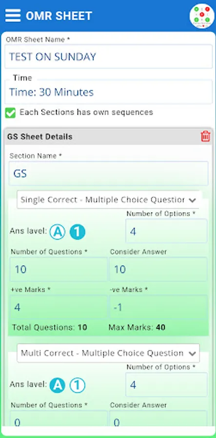 1. Create unlimited OMR with unlimited numbers of options like Single / Multi correct & user input answers, unlimited sections