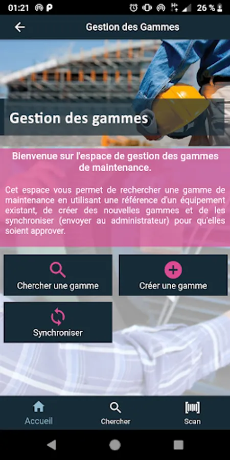 Permettre aux utilisateurs de créer les gammes de maintenance sur chantiers même s’il n’y pas de connexion et de la synchroniser après.