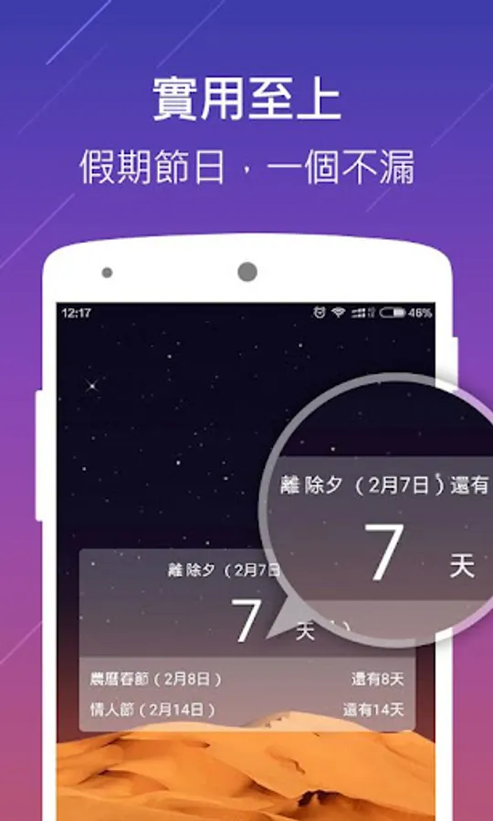3, 實用個性:手機屏幕小日曆,最近三個節日一一呈現!