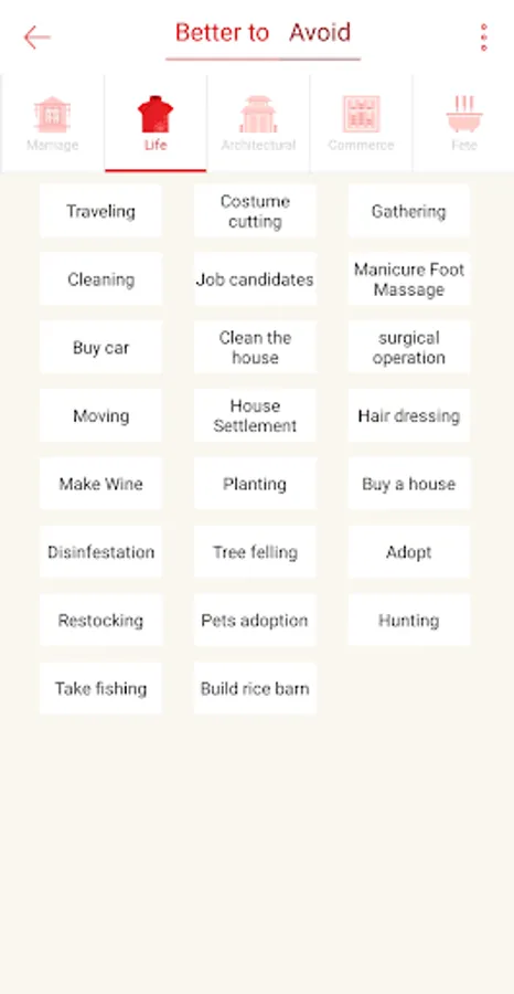 3.Each page specifies whats the good day to do, such as wedding, childbirth, birthday, funeral, housewarming, opening moving, promoted, retirement, and twenty-four solar terms reminder, help you to see Chinese culture in a different view.