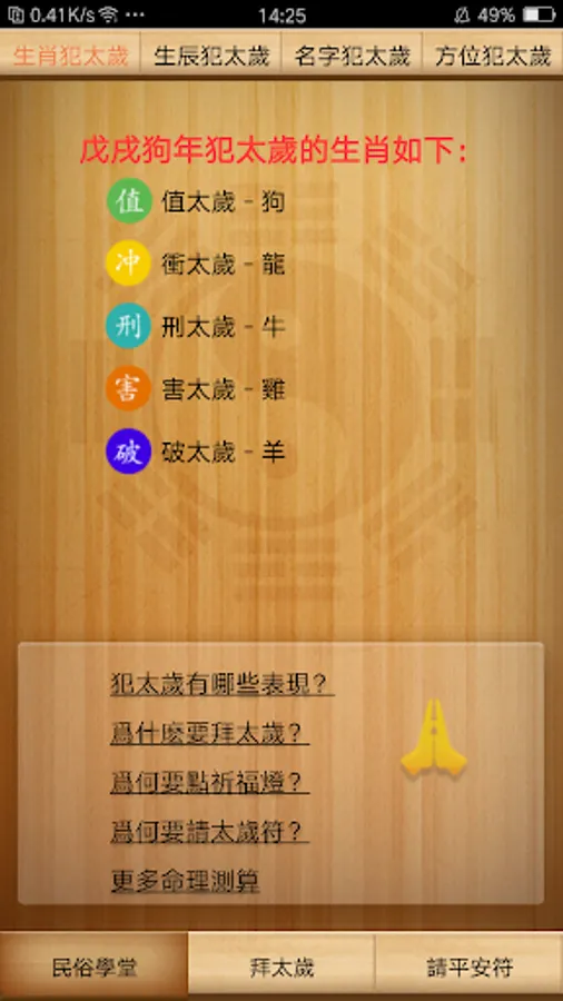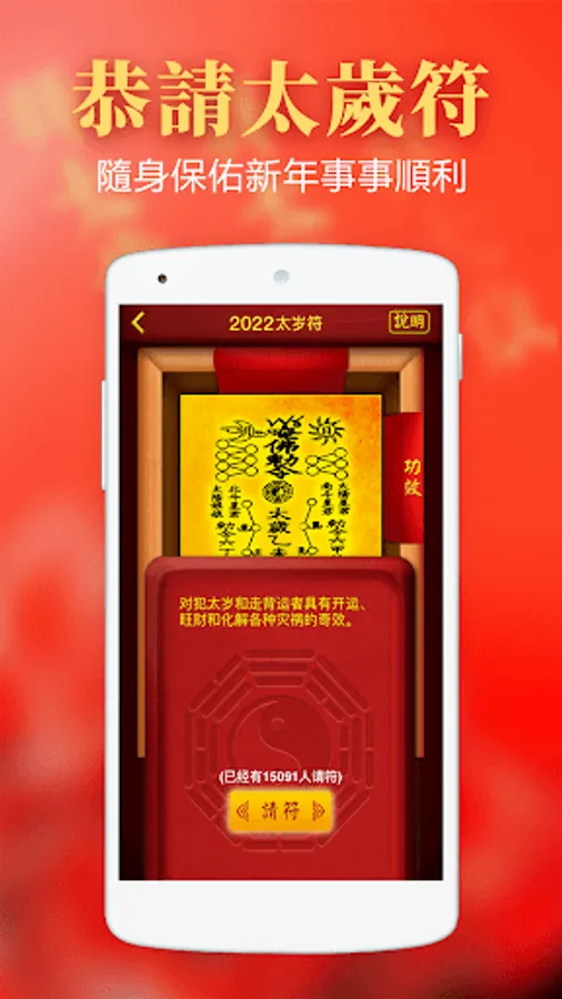 Have you been restless or ill recently? There are villains in the company to slander? Poor relationship between husband and wife, relatives and friends? Download the app to see if you are committing Tai Sui! Pray to Tai Sui, please resolve the amulet, good luck will come naturally!
