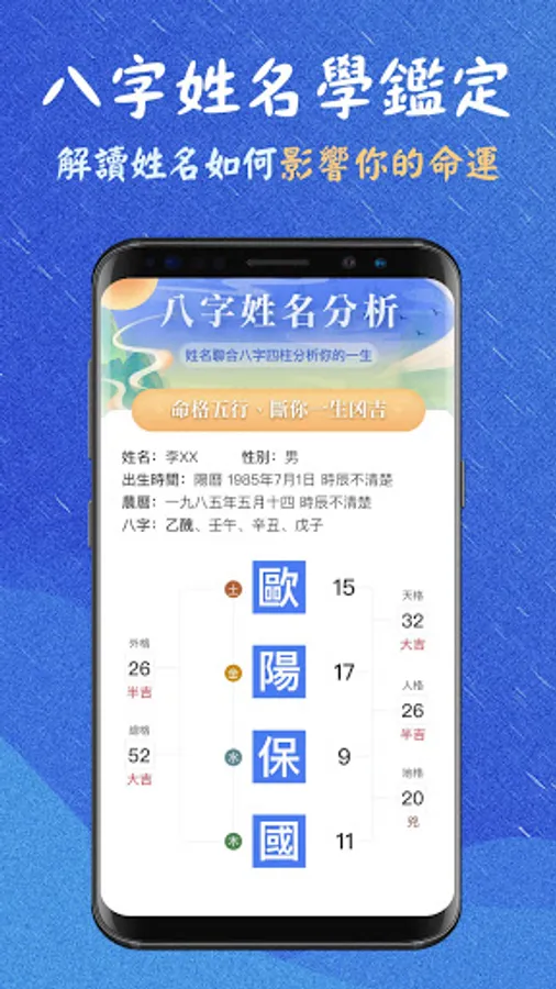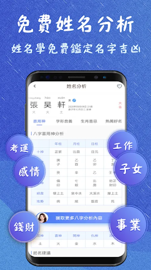 1. Inherit the advantages of traditional numerology naming, and use true solar time to accurately analyze the eight-character information;