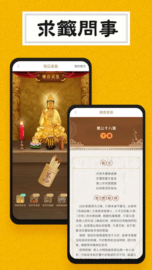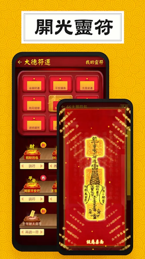 Dao talisman, also called divine talisman or celestial talisman. Consecrated by eminent monks and Taoists. When the user enters the application, please select the charm first, and then the charm. After that, you can choose to continue to consecrate or bless. Consecration or blessing will make the talisman have higher mana. At the same time, it provides the function of asking for an online spiritual lottery to serve the public, asking for a lottery to solve doubts, and asking God for instructions.