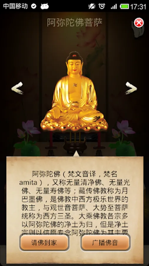佛經梵音是靈動菩提旗下官方應用(http://www.jingangjing.com)為促進社會和諧,以弘揚佛法及佛教文化為己任,同時也為能更好的服務於廣大網友和信眾,網站不僅提供金剛經全文,經與古本金剛經原文逐字對照,還提供 佛教經文、線上誦經、線上供佛、延壽祿位、往生蓮位、線上念佛、靜心梵音、免費下載、佛像鑒賞等內容。願以此功德,普及於一切,我等與眾生,皆共成佛道。南無阿彌陀佛!