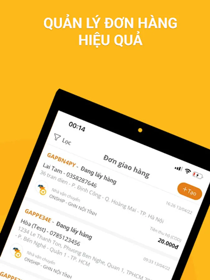 - Create orders and track orders on any mobile application or website anytime, anywhere with a friendly and easy-to-use interface.