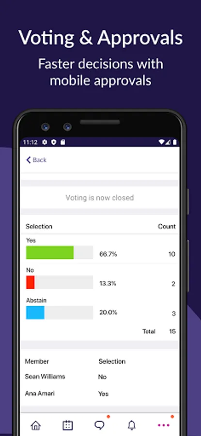 • Vote on motions and approvals