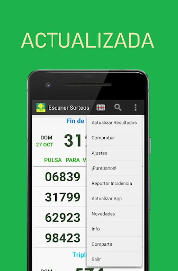 Aviso legal.Esta aplicación no está vinculada con, ni afiliada a, ni aprobada por la Organización Nacional de Ciegos Españoles. El propósito de está aplicación es únicamente informar de los resultados de los sorteos de la ONCE. La información aquí reflejada lo es a título informativo. La Lista Oficial de Premios es el único documento que da fe de los mismos. Para obtener más información o comprobar los resultados oficiales contacte con la Organización Nacional de Ciegos