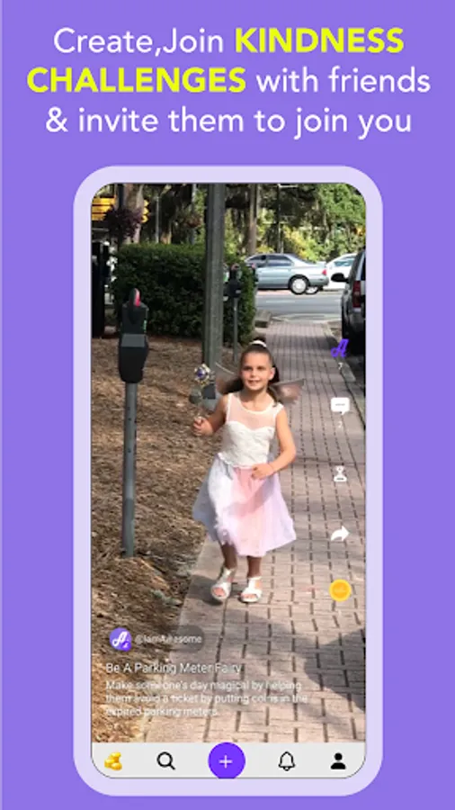 You earn points creating and participating in family fun kindness challenges. Your colorful halo around your profile avatar glows brighter, exploding changing colors as you level up joining in the fun videos creating a ripple effect of kindness in the World. Exchange your points for animated upgrades to your profile in the virtual store.