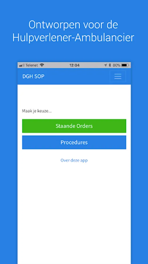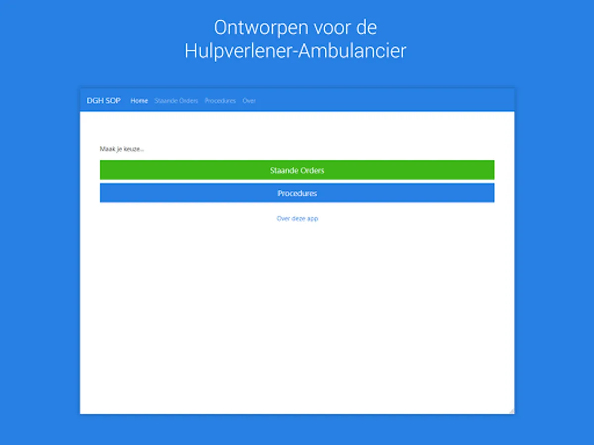 The app does not replace the training Hulpverlener-Ambulancier nor mandatory continuing education. The care of the patient is still in first place. Using this app should never detract from doing that.