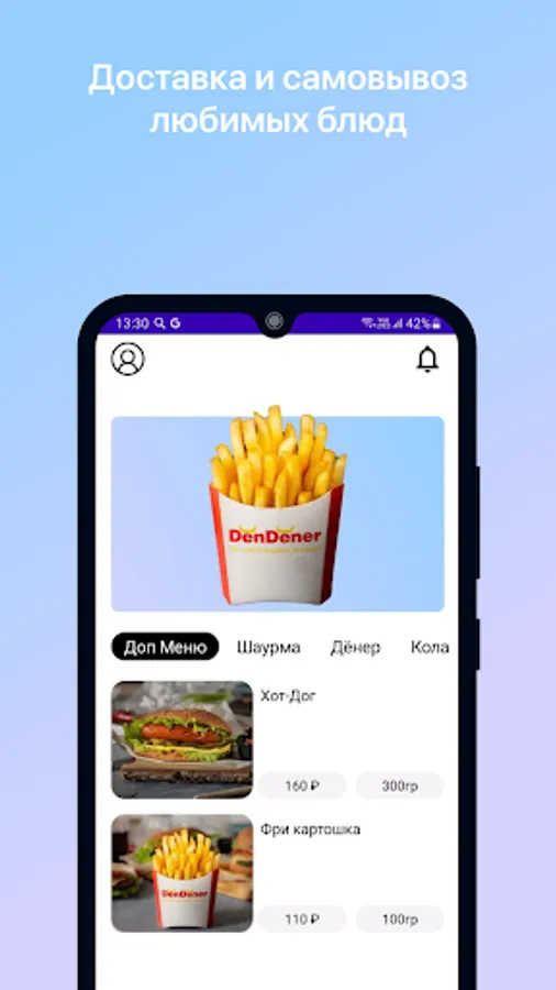 The DenDener application is a convenient service for quick online ordering of delicious dishes.