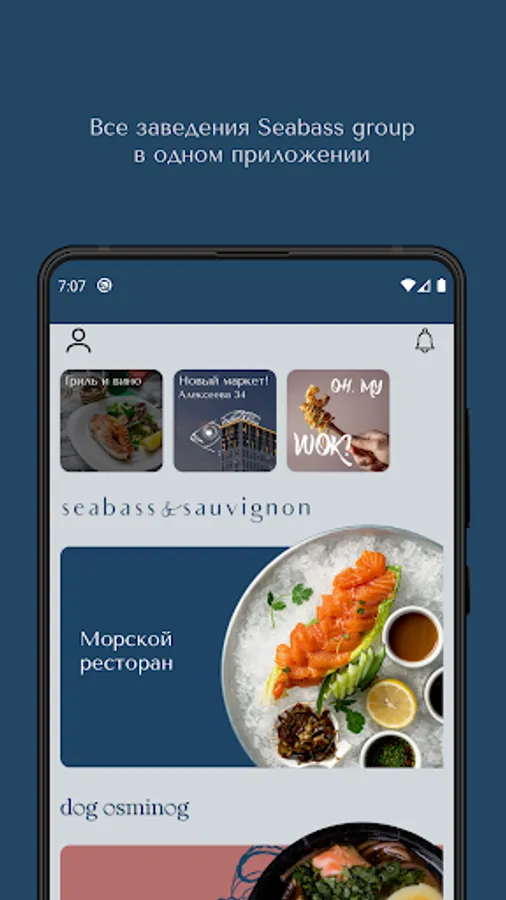 The freshest fish and seafood are on the Seabass & sauvignon menu, in the Seabass market and Dog osminog burgers. Collect points, be the first to know about promotions and always stay on the same wavelength with us.