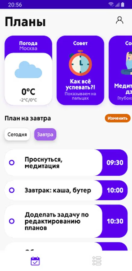 Plan your day, week and goals for the coming months, set goals and achieve them! And we will help you with tips and life hacks. It is easy to keep track of your daily plans in the app.