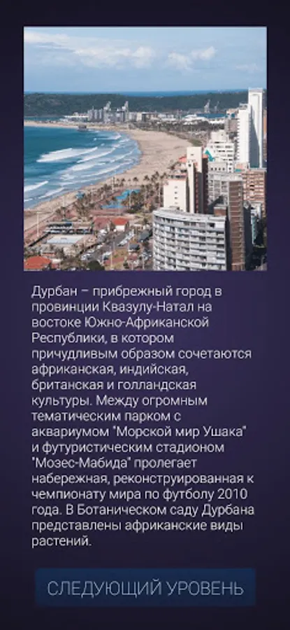 After each of your answers, you will find out some details about the city, and also see its photo.