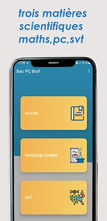 This application brings to the 2nd year high school student bac Sciences Maths A national exams with correction for physics, SVT and mathematics.