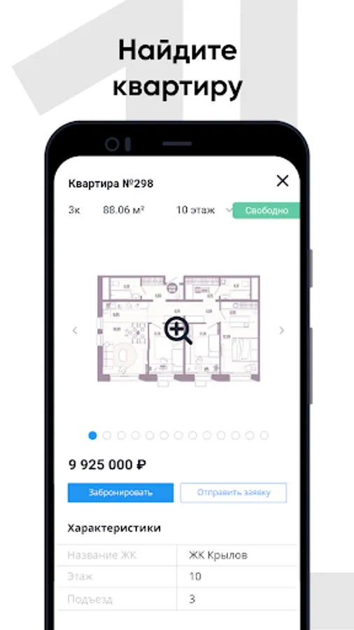 – choose a residential complex and look at the catalog of apartments, storerooms and parking spaces;