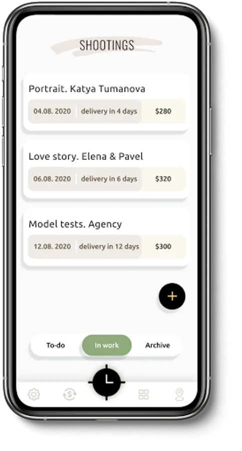 PhotoPlan is the first photographer‘s online-planner that allows to structure the main stages of a professional's work. The application has 4 main sections. Use each of them to simplify the shooting process: