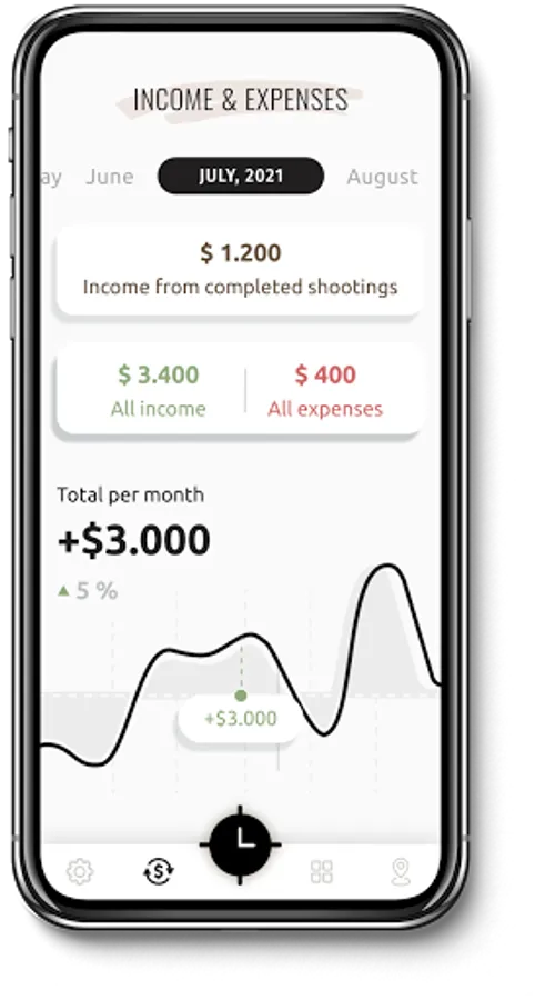 By subscribing, you get the access to all sections of the application: "Shootings", "Moodboard", "Locations", "Income & Expenses".