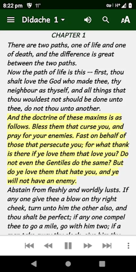 This audiobook, “Didache”, was produced using the audio made by Audio Bible Recordings. You can find their excellent work on YouTube at https://www.youtube.com/channel/Ucl_9pftrH8t7LVrGOBhhfKA/featured.