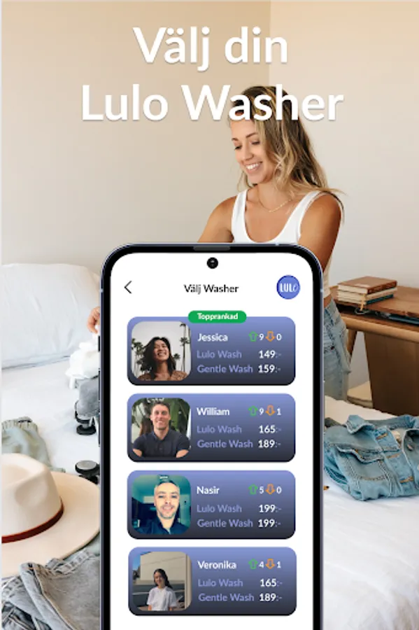 Welcome to Lulo, your new solution to laundry. Sign up and connect with trusted Lulo Washers ready to wash and fold ýour laundry. Choose a Lulo Washer and place your order. Upon confirmation, your Lulo Washer will come and pick up your laundry. They will confirm that the laundry provided is within the weight limits of the order. Then they will take your clothes and return them, washed and folded, at the time you have chosen. Welcome to Lulo!