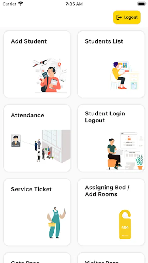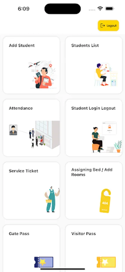 The Property manager will add the room and bed inside the room, add students and assign them to a room, approve the student's gate pass and visitor's pass, clear the queries of service tickets which has raised by students, and also able to log the student attendance.