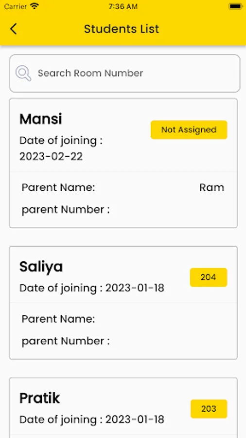 The security guard will log the student in or out when the student goes in or outside the PG. A security guard can also manually log the student’s attendance