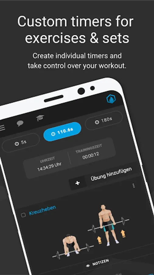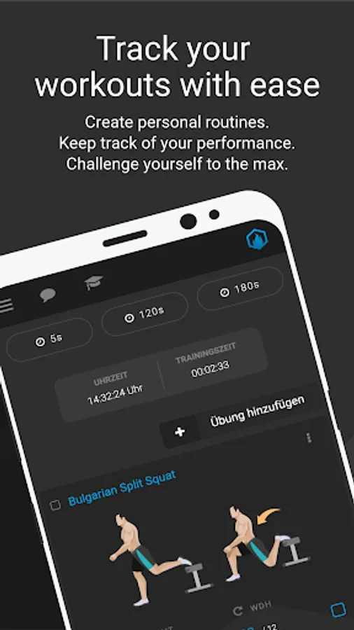 We deliberately refrain from explaining the correct execution of individual exercises. A professional trainer at your gym or a personal trainer does that way better than any app.