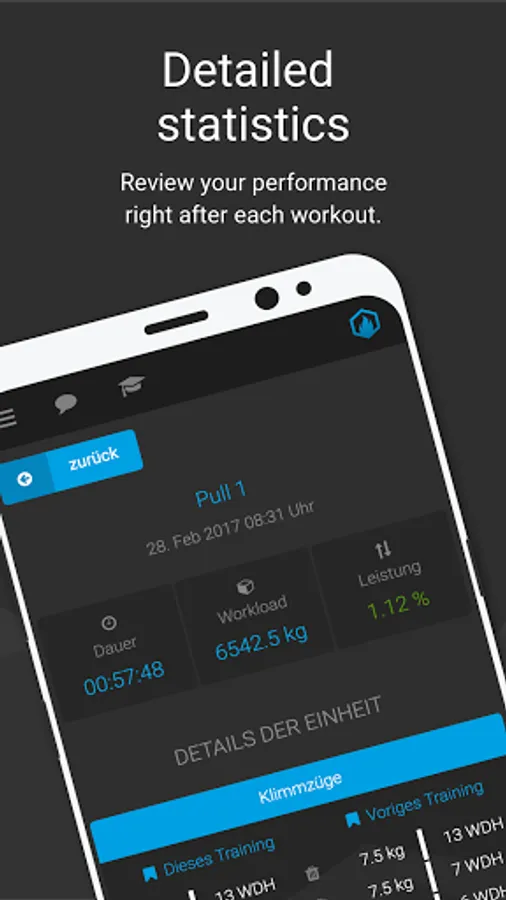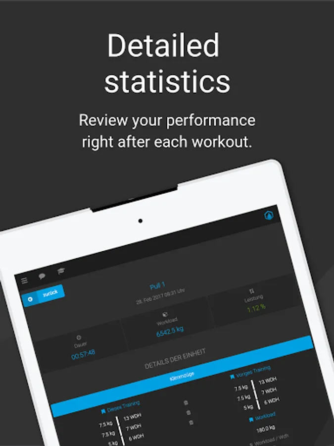 The focus of GAINSFIRE is to quickly and efficiently record your performance and physical fitness. This includes the comparison of the current workout with past workouts in simple to understand statistics.