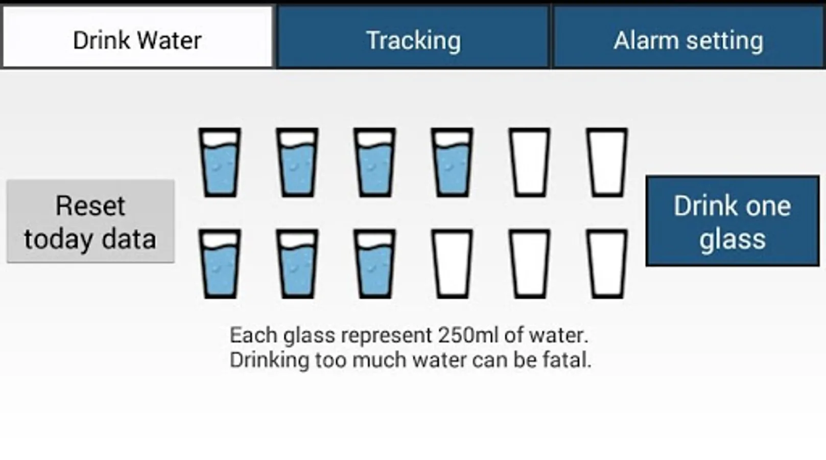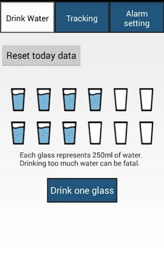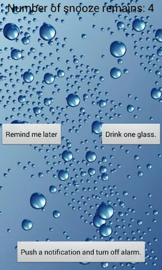 Water Reminder purpose is to remind you to drink enough glasses of water daily.