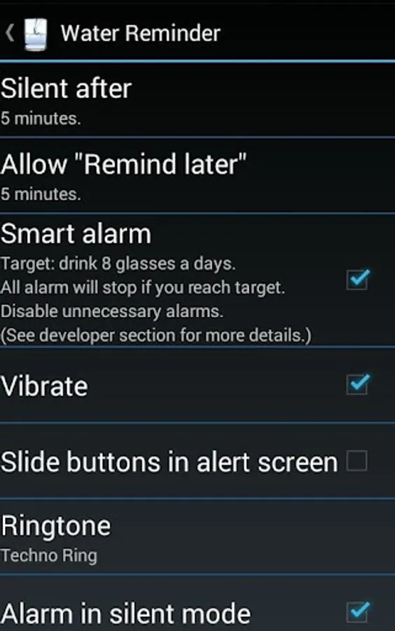 + Simple to use doesn't mean the app has no special feature. Water Reminder allow you to customize your alarms in many options.