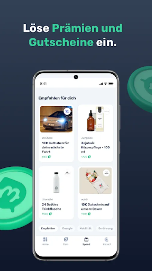 PLAN3T rewards you for a sustainable lifestyle. Connect your bank account quickly and securely and receive automatic cashback and vouchers from sustainable partner companies such as NKM, TIER, WeShare or GOT BAG.
