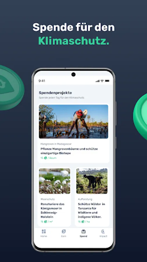 Use your PLAN3T Coins to support effective climate protection projects. Together we plant trees, protect moor and build solar systems for a better future.